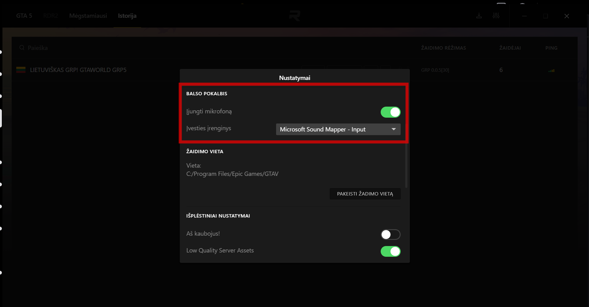 - Įsitikinkite, kad RAGE Multiplayer Launcher turi prieigą prie mikrofono.